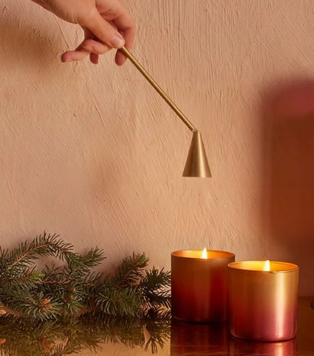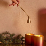 Designed to extinguish flames with style and ease, our solid brass candle snuffers merge the line between pretty and purpose A slender handle and minimal, hinged cone offer easy reach for quenching deep candle wicks without disrupting hot wax.