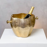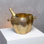Enhance your entertaining with the Sculpted Gold Wine Cooler, a stunning and sophisticated way to keep wine, champagne, or sparkling beverages chilled. Its beautiful sculpted design and radiant gold finish make it a striking centerpiece for any dining table, home bar, or party. Crafted from durable materials, this decorative wine cooler is both a functional accessory and a luxurious, vintage-inspired piece of decor. Perfect for connoisseurs and a great housewarming gift, this gold champagne bucket is a stylish blend of utility and elegance.