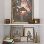 This artwork is printed on high-quality canvas fabric, offering a durable, textured surface. The dimensions correspond to the frame's outer edges. It features a meticulously handcrafted ornate frame that enhances its traditional appeal. Included are a protective paper backing and hanging hardware, allowing straightforward mounting. The design excludes glass, preserving the piece’s lightweight feel and natural texture. Made in the USA with attention to detail.