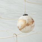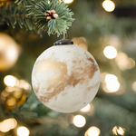 Capture the spirit of the season with the Wonderous Ornament, a glass orb with a metal cap to hang from. These matte white and gold Christmas ornaments are each uniquely marbled. Layered in with lights, the Wonderous Ornaments cast a festive glow.
