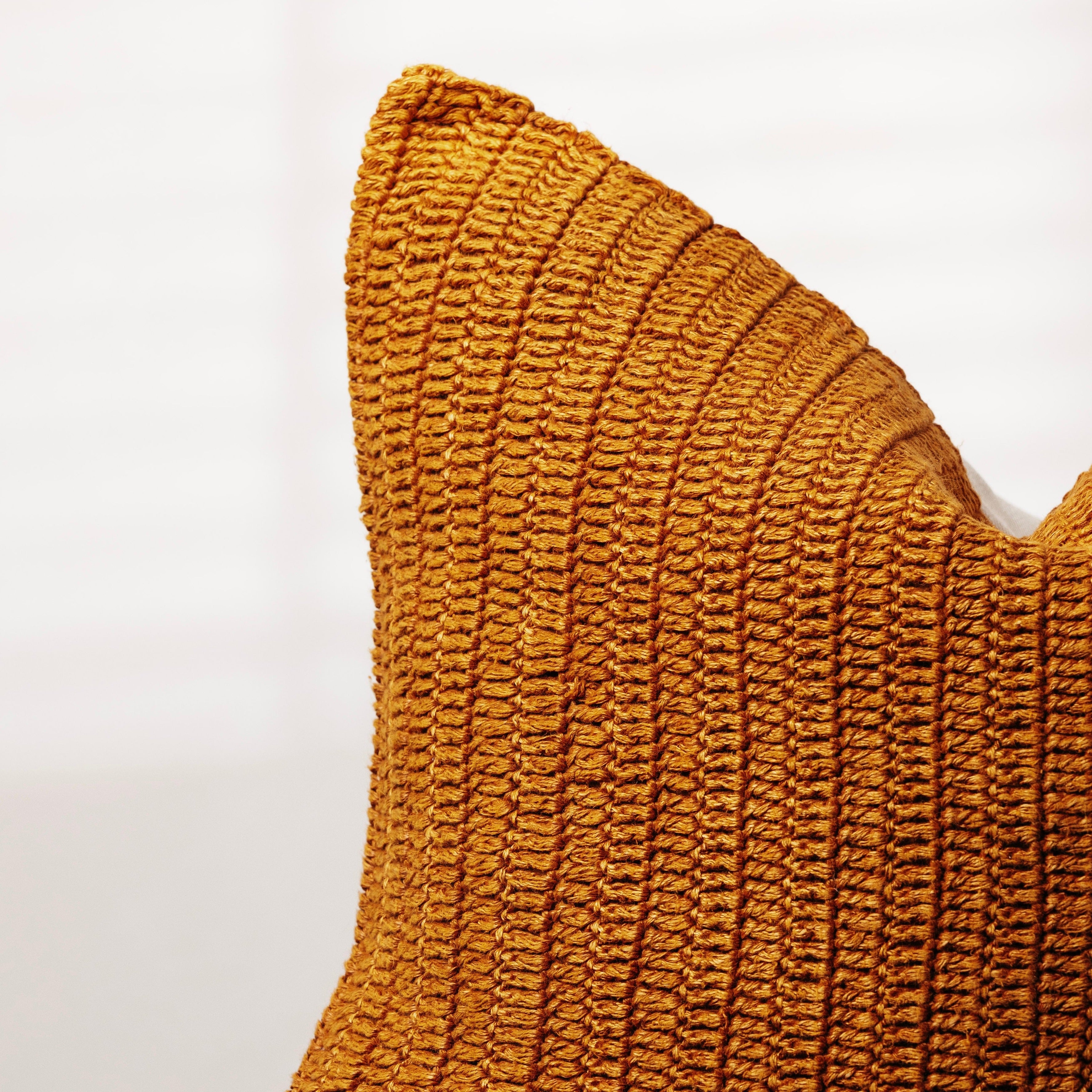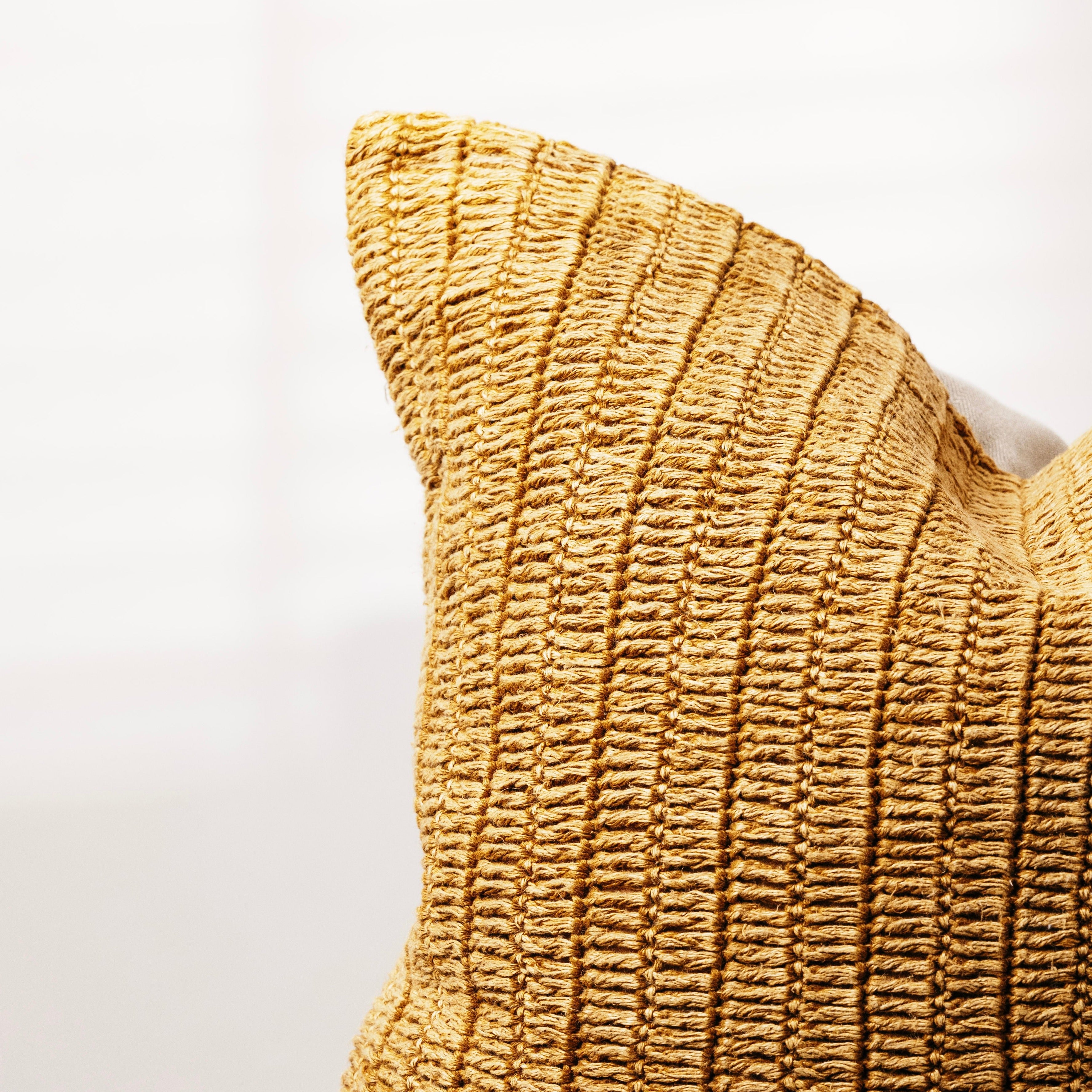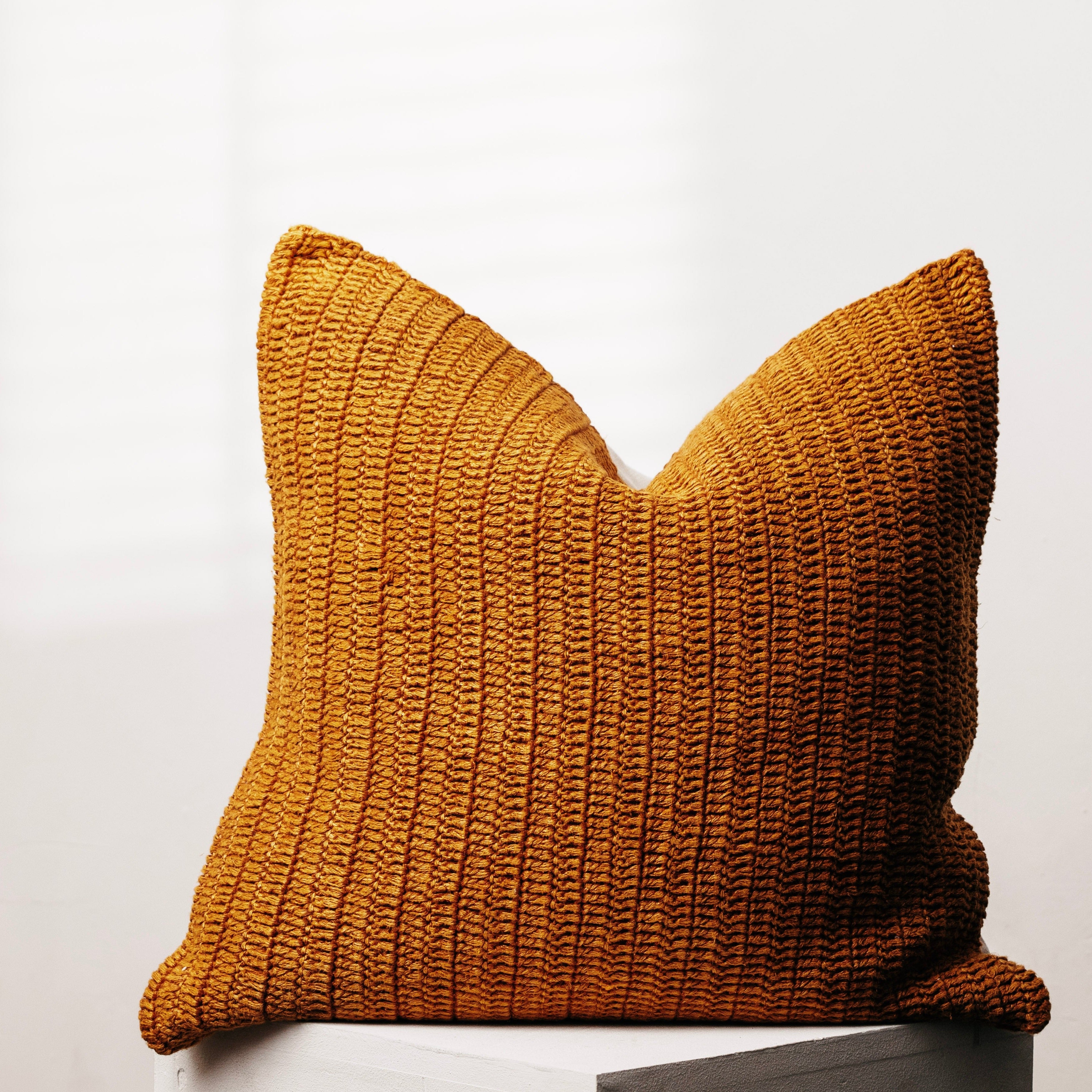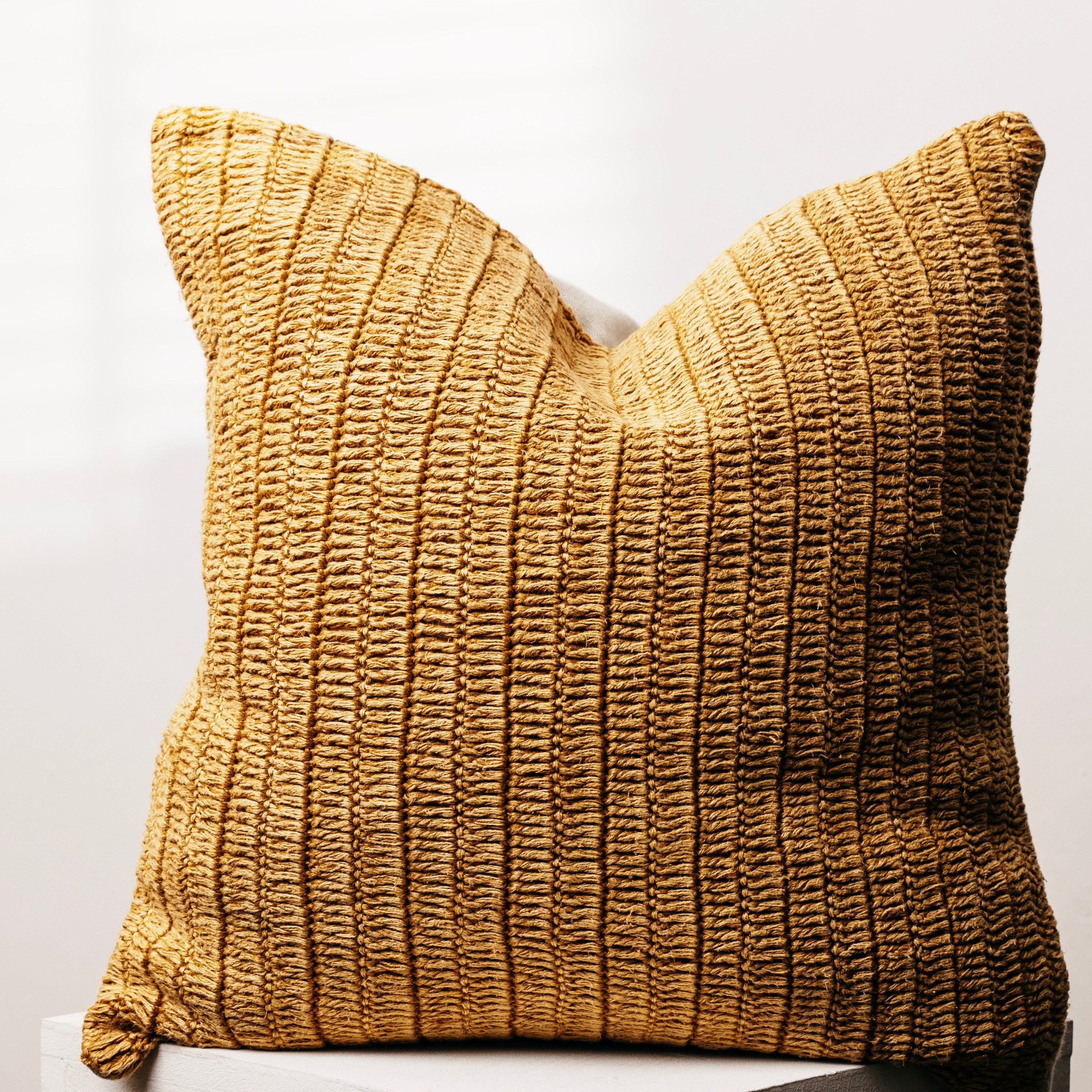 Subtle, monochromatic hue with chunky hand-knit texture to add depth and dimension to any space.