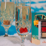 Directions: Drop 2+ cubes into a flute, pour 4oz champagne/bubbly over the cubes, and let them dissolve slowly. No mixing required!