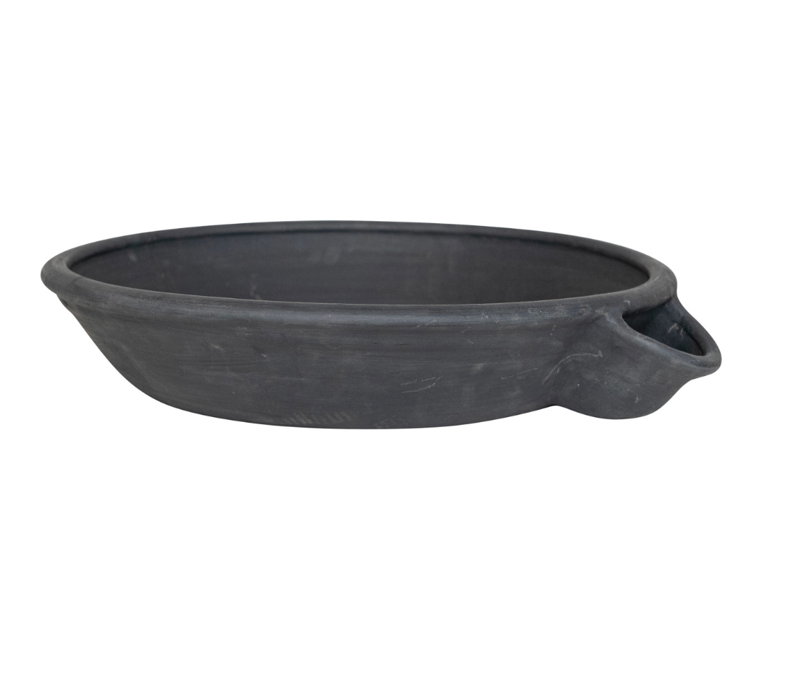 This gorgeous reproduction clay dahli bowl will add vintage charm to your space bringing instant warmth and character to any shelf or table. Due to their unique nature, each bowl may vary slightly from image shown.