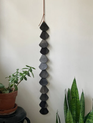 This handmade ceramic tile wall hanging features twelve tiles glazed varying shades of matte black, some lighter and some darker. A beautiful, organic piece that provides an earthy, artisan touch to any space.