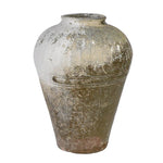 A commonplace item in the Chinese countryside, these storage jars are used for a variety of functions. Handcrafted and age-worn, each jar is unique. The earth-toned Mijiu Jars are tapered with unique markings on each. This is a vintage item so both size and condition will vary.