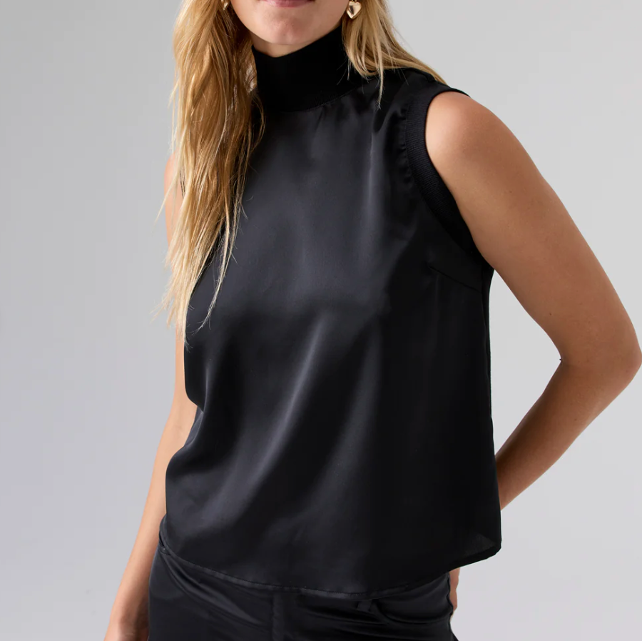Satin mockneck top in black