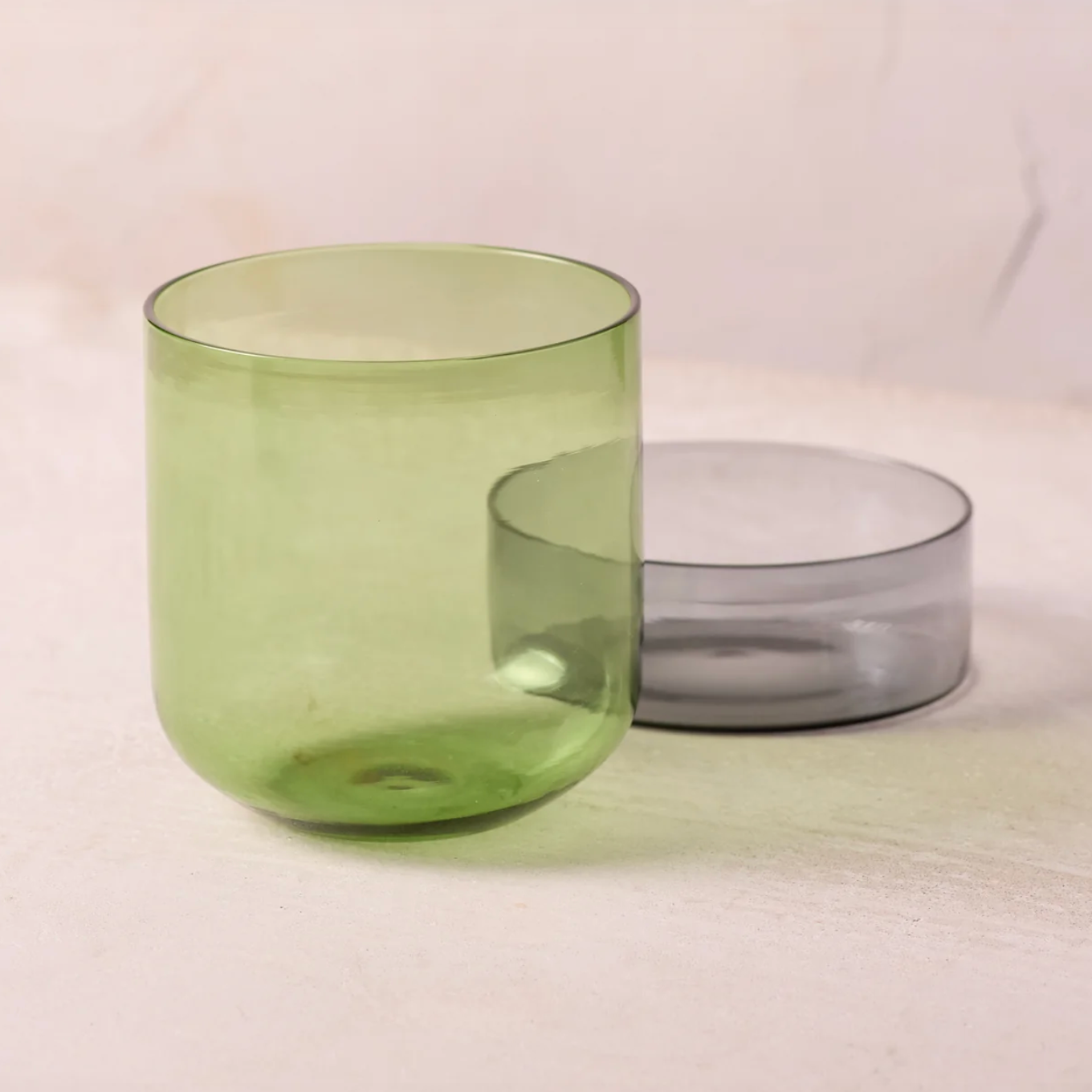 Add a touch of vintage charm to your kitchen with the Niko Canister. Crafted from durable borosilicate glass, this canister features a sleek silhouette shaped from molten material, combining functionality with timeless design. Its jewel-toned duotone hues, infused before molding, create a striking visual appeal. Artisan-crafted in India, the Niko Canister is perfect for storing your essentials while enhancing the beauty of your space.
