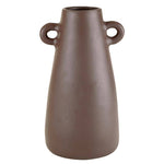 Our Brown Double Handle Vase features a timeless and artistic design that effortlessly enhances the ambiance of any room. The rich brown hue and unique double handles create a captivating focal point. •