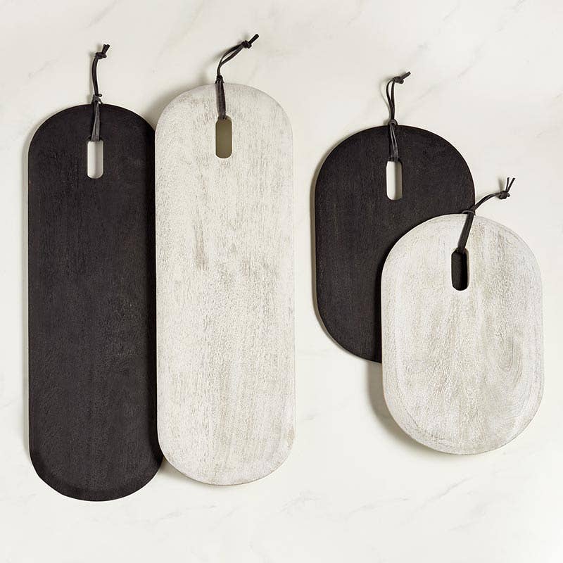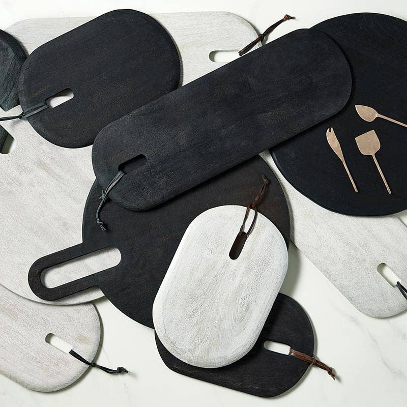 Our Small Oval Savana Wood Board is made of acacia wood and has a brushed black wash finish. Perfect for charcuterie, antipasto or desserts.